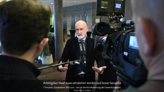 "73 Prozent der Bürgerinnen und Bürger halten den Staat inzwischen für überfordert. Vernachlässigte Straßen, Pflegenotstand, Unterrichtsausfall und das generell schwindende Sicherheitsgefühl der Bevölkerung haben eine gemeinsame Ursache: fehlendes Personal. Um am Arbeitsmarkt nicht immer weiter hinter der Privatwirtschaft zurückzufallen, muss der öffentliche Dienst dringend attraktiver werden und besser bezahlen. Genau darüber verhandeln wir ab 3. Dezember mit den Ländern“, erklärte der dbb Bundesvorsitzende Volker Geyer zur Forderung am 17. November 2025 in Berlin.