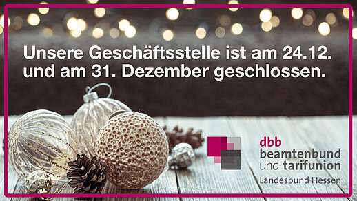 Der Vorstand des dbb Hessen wünscht Ihnen und Ihren Familien und Angehörigen ein ruhiges, friedliches und besinnliches Weihnachtsfest und ein glückliches, gesundes und…